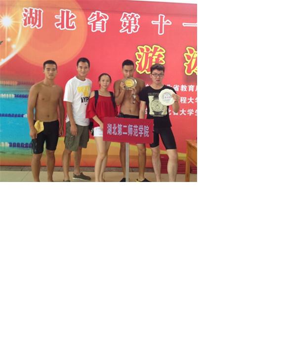 (通讯员 万真)2014年6月29日上午,我校游泳代表队在“湖北省第十一届大学生运动会游泳比赛”中获得佳绩。本次运动会我校运动员参加甲组比赛,共获得男子、女子50蛙泳2个单项冠军,1个单项亚军,1个单项季军,并在男子4×50m接力比赛中团结拼搏荣获第六名的佳绩。面对强劲对手,我校8名运动员在领队武赣龙,教练员蒋志伟、王慧老师的带领下,克服了比赛准备时间短、经费紧张、缺乏训练场地的种种困难,从容面对,自信满满,发挥出了最好的成绩,在12所高校参加的16支代表队中获得甲组团体第六名,男子甲组团体第六名,女子甲组团体第五名的佳绩,赛出了我们湖北二师人的风采。