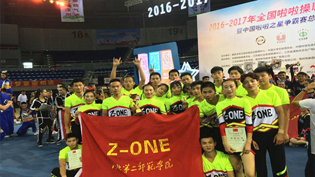 7月15-21日,2016-2017年全国啦啦操联赛总决赛在江苏溧阳举行。我校Z-ONE啦啦操队24名队员在体育学院教师王珺、尹开宁的指导下,经过激烈角逐,获得集体技巧啦啦操第一名、集体街舞啦啦操第二名、双人花球啦啦操第三名的好成绩。