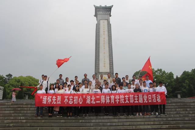本网讯:为深入开展“两学一做”学习教育,弘扬革命传统精神,强化全体党员党性和理想信念教育。4月22日,体育学院党总支组织师生党员50余人赴红安开展“缅怀先烈,不忘初心”支部主题党日活动。