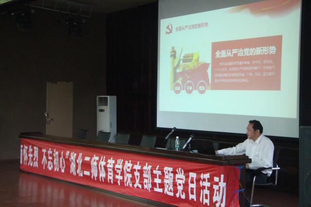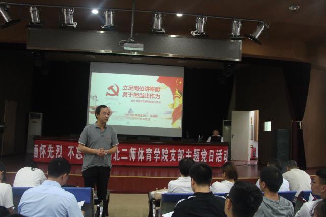 (本网讯通讯员杨梦琪)为了深刻领会和学习十九大报告精神及“两会”精神,更好地指导学院教育教学工作,4月22日下午体育学院党总支书记张绍明在红安烈士纪念馆报告厅为全体师生党员讲党课。