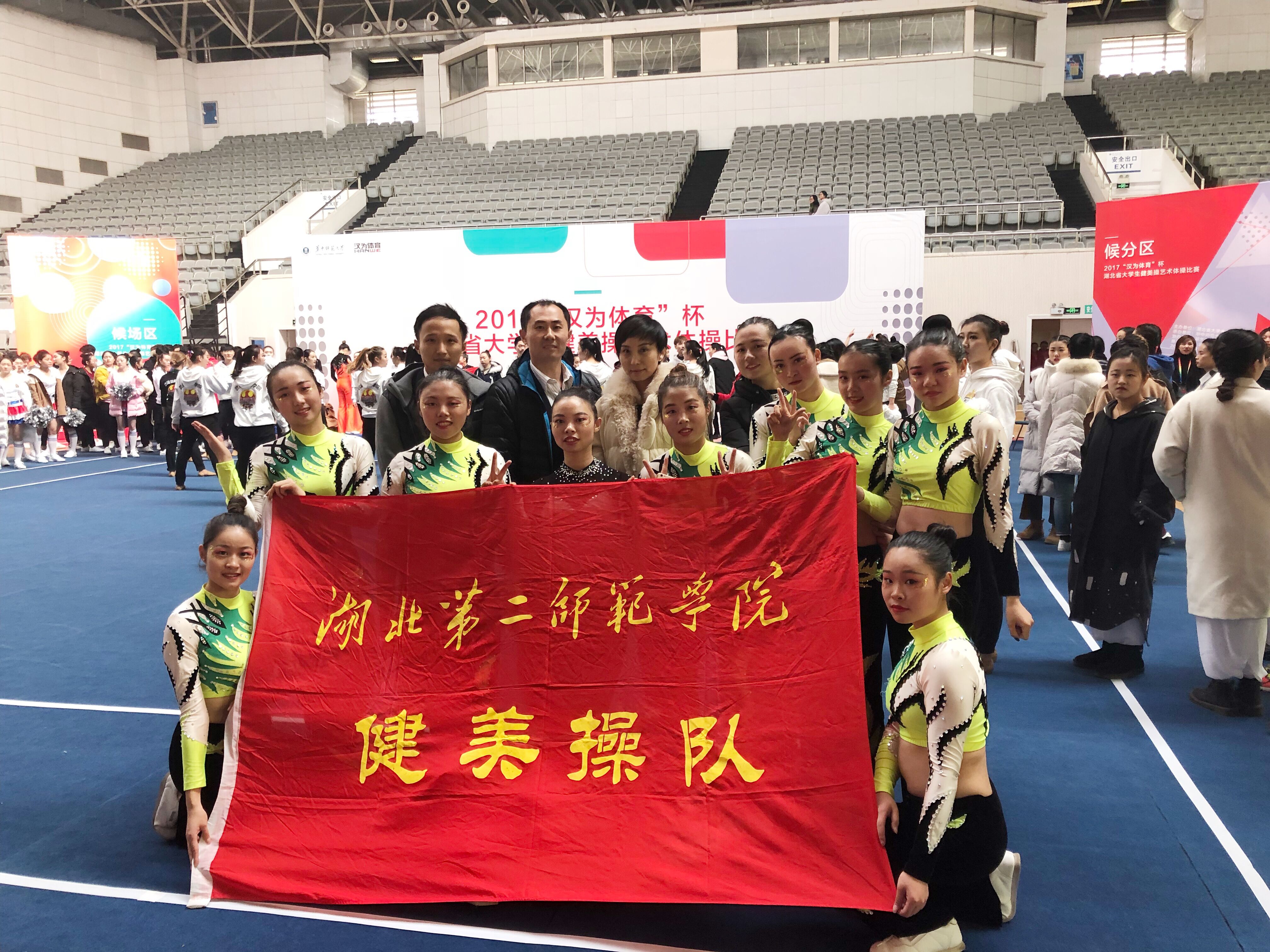 2017年湖北省大学生健美操艺术体操比赛于12月1日在华中师范大学拉开帷幕。在教练杜啸、王蓓蓓、刘煜老师的带领下,我校健美操代表队一路表现优异,最终在众多队伍中脱颖而出,获得体育院校组有氧轻器械四级冠军,有氧踏板亚军和有氧舞蹈季军的好成绩。 同时杜啸、王蓓蓓两位老师被评为“优秀教练员”称号,刘煜被评为“优秀裁判员”称号。