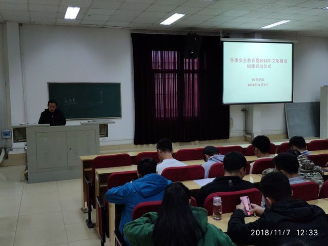 本网讯(通讯员 周柳明)2018年11月7日中午13:00,体育学院冬季安全教育既文明寝室创建仪式在老图书馆2号报告厅举行,辅导员李祖平老师主持会议。党总支副书记镇方松出席会议,体育学院16级、17级、18级全体学生参加。