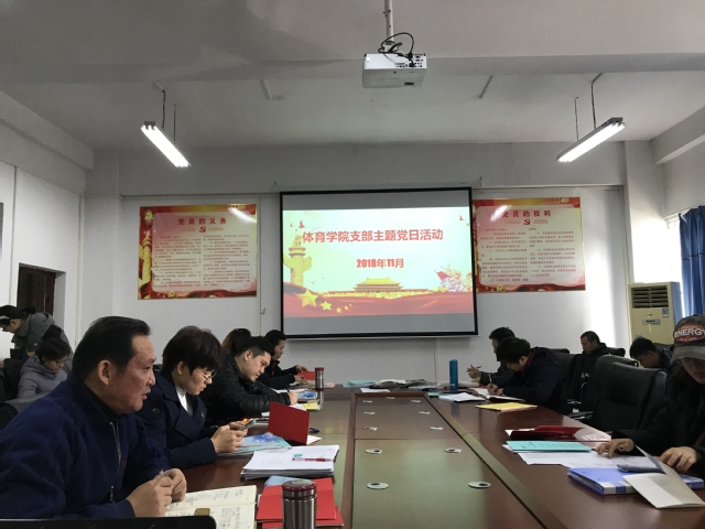 根据学校院党组〔2018〕49号文件精神,体育学院11月8日下午组织全体党员开展支部主题党日活动,本次活动主题为《增强政治意识,坚决贯彻落实党中央关于开展脱贫攻坚专项巡视的决策部署》。