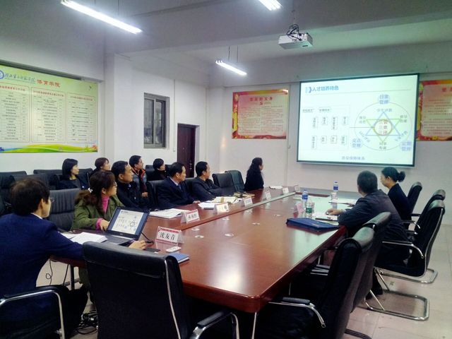 随后,评估专家在我院会议室与我院班子成员、系部主任、教师代表等20余人举行座谈。院长沈友青代表学院从学院概况、目标与定位、师资队伍、教学资源、培养过程、学生发展、质量保障、学院特色及存在的问题等几个方面用PPT对我院本科教学工作进行了汇报。汇报中,沈院长直面我院在师资队伍、保障条件、教学改革、师生融合等方面存在的问题与不足,并提出改进的措施与对策。