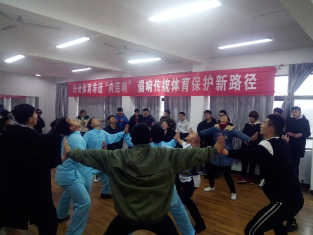 本网讯 12月6日下午,在体育学院会议室,“多彩非遗、舞动体育” ——国家级非物质文化遗产“肉连响”宣传活动圆满举行。国家级非物质文化遗产代表性传承人刘守红受邀主讲。我院院长沈友青、科研处副处长李贤智及部分师生参加活动。体育学院副院长孙利红主持。