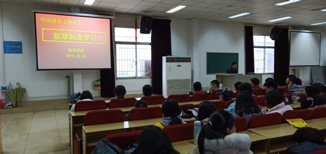 2019年3月5日,体育学院全体在校生在老图书馆二号报告厅召开了学风建设专题教育大会,会议由辅导员李祖平主持,副书记镇方松列席。