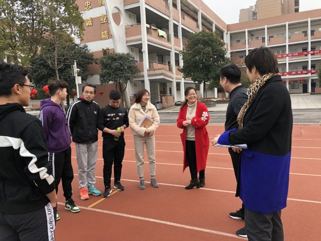 在光谷实验中学,孙院长一行分别与实习生以及实习指导老师座谈交流,观摩大课间(广播体操和千人跑操),并对实习生王康的8年级短跑课进行听课并研讨。实习学校指导老师对我院实习生的综合素质表示认可,认为他们服从管理,认真备课、上课,后期需注重课堂教学方法、细节等。