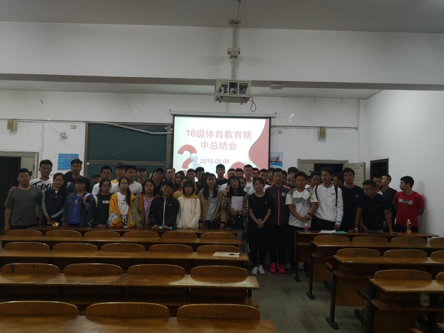 2019年5月5日晚,16级体育教育专业在10102教室召开了2019年班级期中总结会,会议由辅导员李祖平主持,全班70名同学参加。