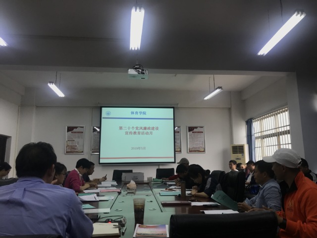 本网讯 (通讯员向琴英)根据鄂二师院党发【2019】15号《中共湖北第二师范学院委员会关于印发第二十个党风廉政建设宣传教育月活动方案的通知》要求,为深入推进活动进行,结合体育学院实际,总支书记张绍明于5月17日下午在会议室主持召开体育学院第二十个党风廉政建设宣传教育活动推进会。