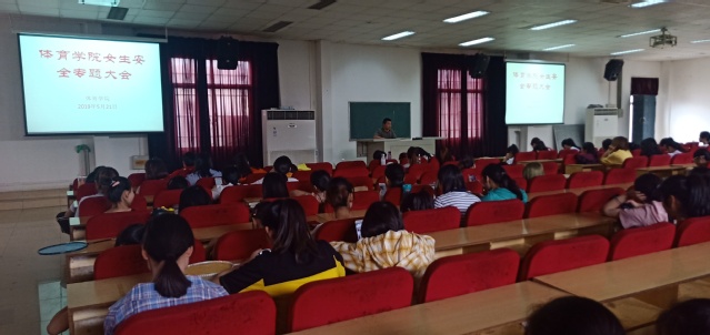 2019年5月21日中午,体育学院女生安全专题大会成功在老图书馆2号报告厅召开,体育学院全体在校女生参加,辅导员李祖平主持大会。