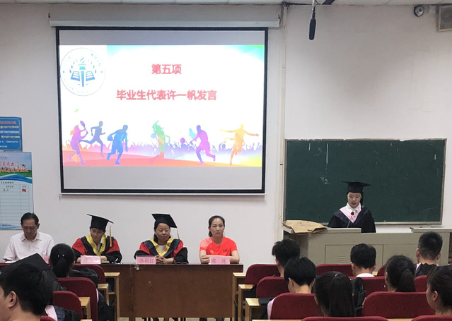 师代表熊冰发言,她寄语全体毕业生要牢记全院老师的嘱托,用扎实的学识和过硬的本领立足社会,成就自我。