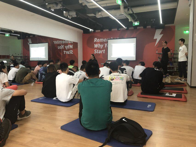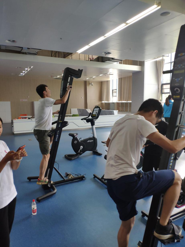 同学们在听健身房负责人的详细介绍之后,我们很多同学也提出了很多有关健身以及运营管理方面的一些问题,当然也得到了专业人员详细的解答。体验了一下他们的团操,和由他们的私人教练带着,体验和学习各种健身器材。科研所的领导给我们介绍了重点实验室,儿童敏感期的研究运动员选材,运动员机能评定,运动员损伤的康复训练相关知识,同时还讲述了运动康复医院,运动康复室。