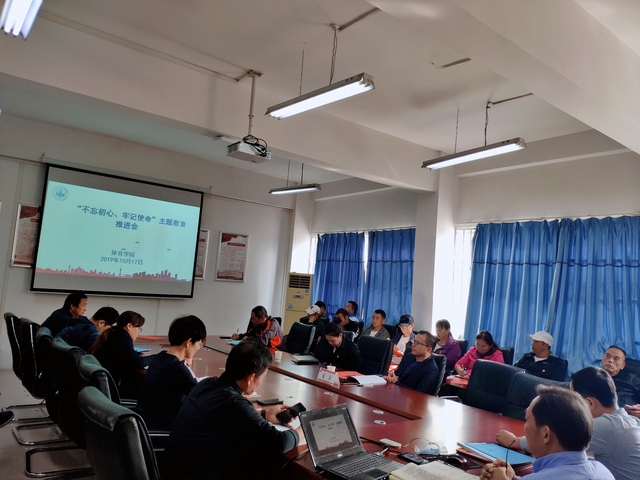 学院书记张绍明汇报了体育学院主题教育“不忘初心、牢记使命”开展情况,指出了学院在开展主题教育工作中存在的不足,同时提出了主题教育工作要达到的预期效果。