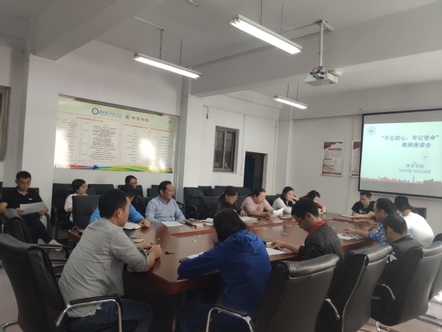 本网讯(通讯员向琴英)体育学院于10月24日下午3点在会议室开展“不忘初心、牢记使命”青年教师座谈会。总支书记张绍明主持会议,学院全体班子成员参加座谈会。