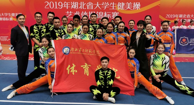 本网讯 (通讯员 廖倩)11月22日—23日,湖北省大学生健美操、艺术体操锦标赛在华中师范大学举行,我校健美操队获高校体育院系组男子踏板、女子踏板、混合踏板、女子有氧舞蹈四项冠军,体育学院杜啸、王蓓蓓老师分别获“优秀裁判员”“优秀教练员”。(编辑 禾弋)