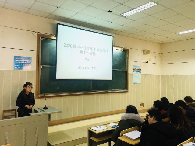 本网讯 12月26日上午10点30,副院长孙利红在阶梯一教室主持召开2020届毕业论文中期检查及后期工作安排会议。全体2020届毕业生及论文指导老师参加。