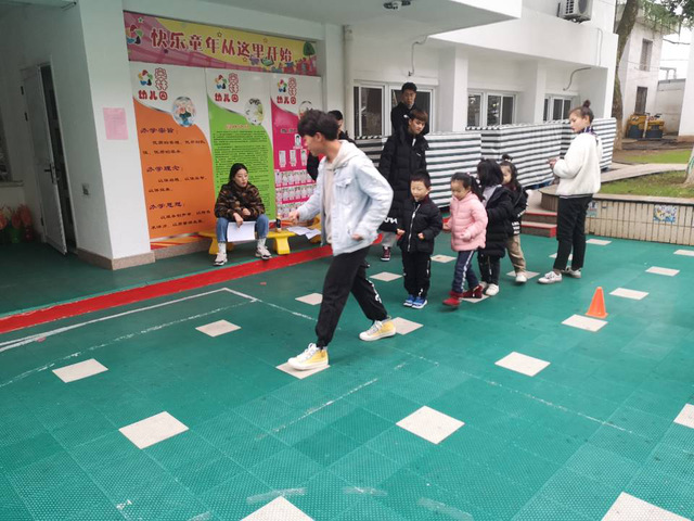2019年12月30日上午,2018级体育教育1班在奥林幼儿园进行5岁幼儿大肌肉及动作技能发展的实验。实验项目包括:原地运球、双手接球、地滚球、脚踢球、击固定球、肩上掷球、立定跳远、单脚跳、侧滑步、前滑步、前跨跳以及跑等项目测试。