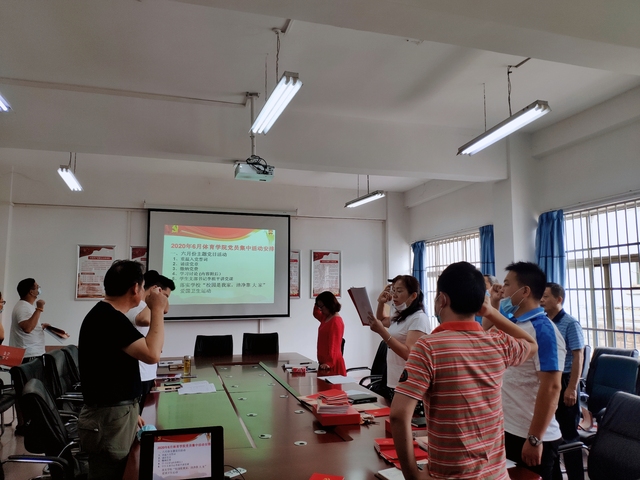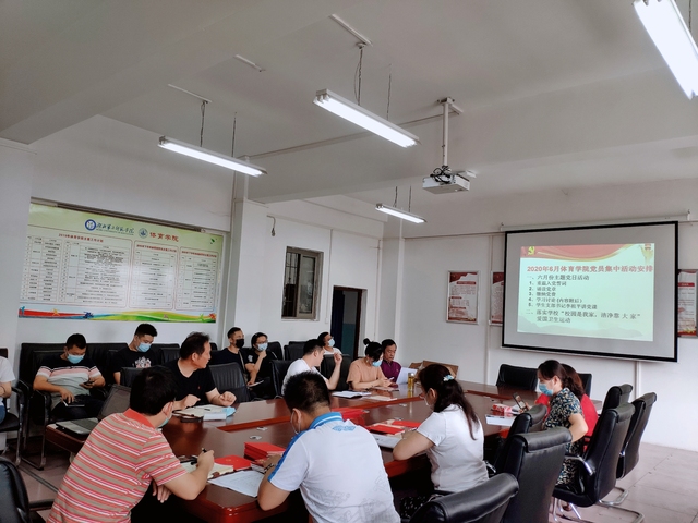 本网讯(通讯员 向琴英) 6月19日上午,体育学院在会议室开展六月份党员集中活动,活动进行了六月份主题党日活动及爱国卫生活动,学院全体党员参加了此次活动。总支书记张绍明主持会议。