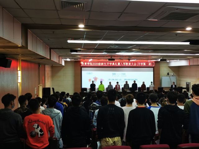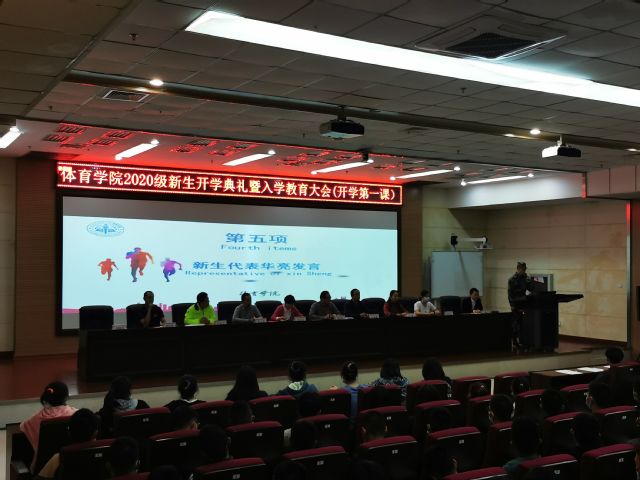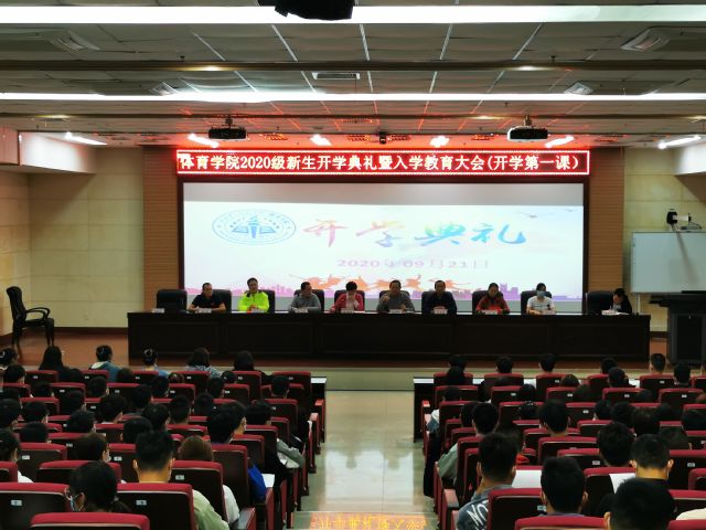 9月11日下午15::30,体育学院2020级新生开学典礼暨入学教育大会在学校图书馆二号报告厅隆重举行。学院领导班子、系主任、辅导员、新生班导师及全体新生共230余人出席开学典礼。开学典礼由学院党总支书记张绍明主持。