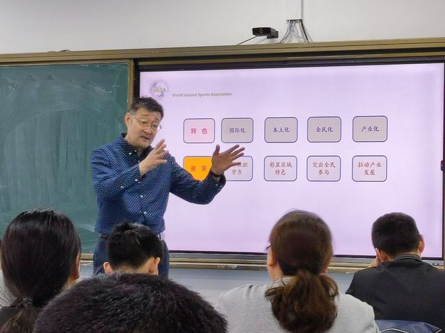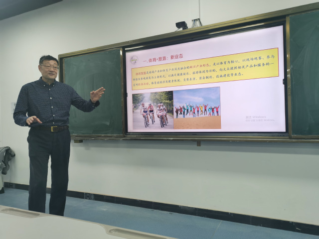 本网讯(通讯员 杨阳)5月19日下午,体育学院特聘教授、首都体育学院博士生导师杨铁黎教授在4205教室,以“体育+旅游:新业态•新消费•新趋势”为主题开展专题讲座。体育学院院长沈友青主持,副院长尹开宁、部分教师及休闲体育专业学生参与本次讲座。