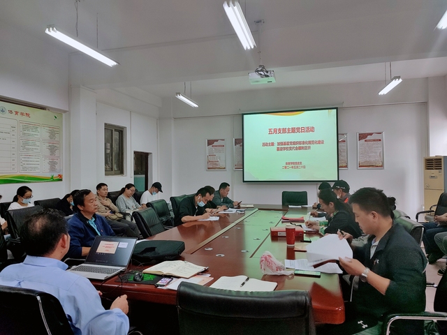 会议首先开展五月支部主题党日活动,教师第一支部书记王丹诵读党章,全体党员缴纳党费,教师第二支部书记尹开宁带领大家学习本次活动内容。尹书记围绕“加强基层党组织标准化规范化建设,喜迎学校党代会顺利召开”学习主题,重点学习习近平在考察清华大学时重要讲话精神、习近平在打击治理电信网络诈骗犯罪工作作出重要指示、习近平在考察广西时重要讲话以及《中国共产党普通高等学校基层组织工作条例》等四方面内容。