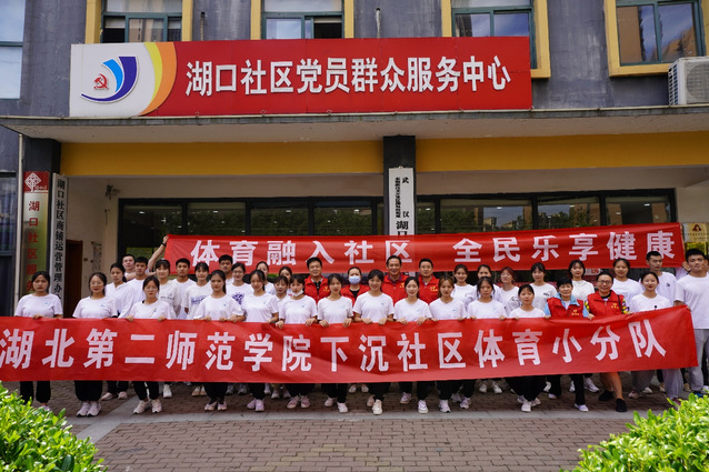 体育小分队在湖口社区广场向社区居民展示了广播体操、健身操、太极拳等活动;队员们对社区居民发放了自制的“体育健身宣传单”;队员们分组开展了“清洁家园”活动。