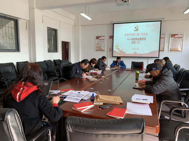 本报讯(通讯员 黄亚飞)2021年11月25日中午13点,体育学院教师第一党支部在体育学院二楼会议室开展11月份支部主题党日活动。会议由支部书记王丹主持。