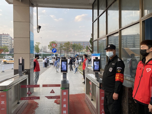 清晨,志愿者们早早的来到各自的岗位,提前做好防疫工作,登记扫码测温严格把关每个环节,志愿者们的工作看似简单重复,实则需集中精力,生怕麻痹大意,掉以轻心,就会让部分想蒙混过关的人有机可乘,检查工作丝毫不能懈怠。因此站岗的志愿者们,始终保持高度集中的注意力,认真核对每个人的出行码,确保校园疫情防控工作稳定向好。就餐期间食堂人群接触密集,给学校疫情防控带来较大压力,能否把好食堂的大门,即影响着能否控制好学校的疫情防控形势,就此志愿者们对校内外考生开展有序分批就餐引导工作,期间也凭借耐心劝阻化解了考生因就餐问题引发的冲突,体现了一名志愿者的责任与担当。当时气温较高,好在门卫叔叔们的关心和照顾也让有些许疲惫的志愿者们不再感觉累乏,内心充满了温暖和力量。