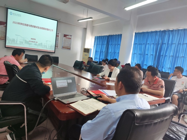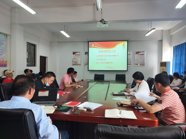 本网讯(通讯员 向琴英) 4月12日中午,体育学院在会议室召开全体党员大会。学习了2022学校党建与思政要点、部署巡视整改相关工作、开展了四月份支部主题党日活动、推选了省第十二次党代会代表候选人和高校系统党代表会议代表。学院总支书记张绍明主持会议,全体党员参会。
