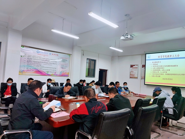 本网讯(通讯员 向琴英) 4月20日中午,体育学院在会议室召开四月份全体教职工大会。会议进行教职工政治理论学习和近期相关工作安排。全体教职工参会,总支书记张绍明支持会议。