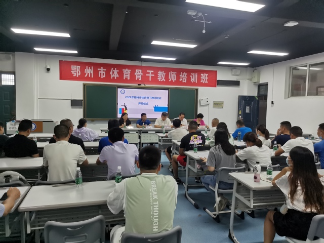 本网讯(通讯员:鄂州市实验小学蔡文娟老师)2022年7月25日,鄂州市体育骨干教师培训活动在湖北第二师范学院正式开班。参加此次培训的鄂州市体育骨干教师一共30人。7月25日上午,鄂州市骨干教师培训班如期开班,出席此次开班典礼的领导有湖北省教育科学院体育教研员甘琼,湖北第二师范学院发展与规划处处长张赟,湖北第二师范学院体育学院党总支书记张绍明、院长沈友青,孙利红教授,以及培训班班主任王丹老师、学习主管罗先斌老师、后勤主管杜啸老师。