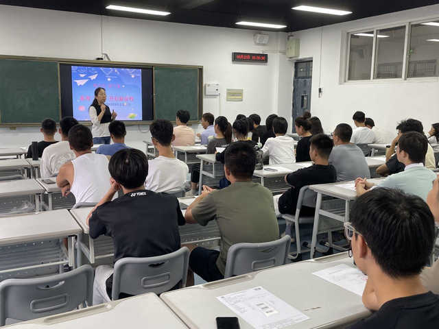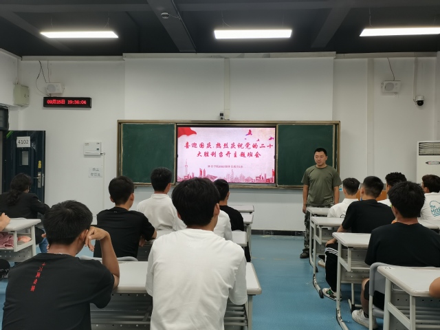 图为党总支副书记给2022级休闲体育1班召开“喜迎二十大 新学期 新气象”主题班会