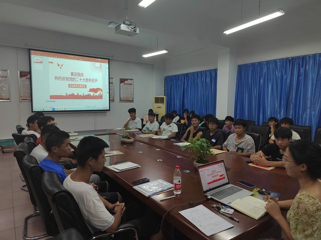 图为辅导员何思琪召开“喜迎国庆 热烈庆祝党的二十大胜利召开”主题教育班会