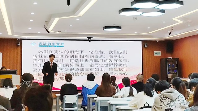 为响应中国共产党第二十次全国代表大会的号召,加强法制宣传教育,培养我校学生宪政观念,本次活动面向全校学生展开。我院陈锦鸿同学在题目为《知法守法信宪法,见智见仁见国家》的演讲当中指出了宪法的含义、宪法的作用、宪法的魅力以及如何学习与捍卫宪法。突出强调了中华民族伟大复兴离不开宪法的保障。通过来自各学院的14名选手激扬的演讲,评委现场打分、复核、点评,最终荣获了第三名的好成绩。