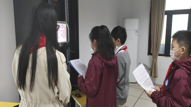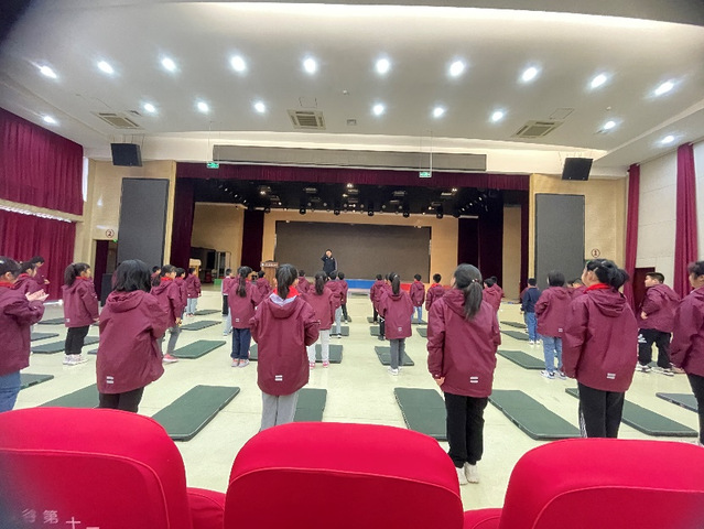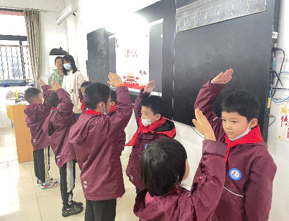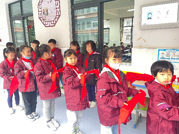 图二:实习生在带队教师带领下学习,学生们少先队员入队仪式