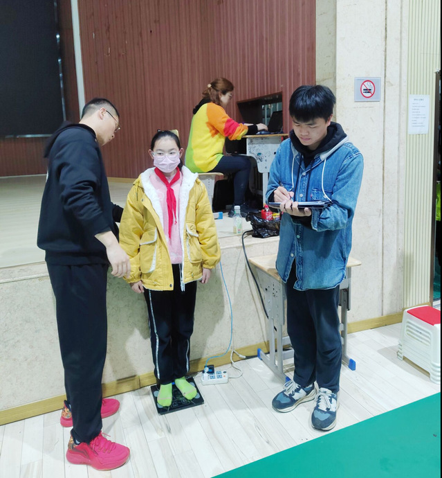 体育学院实验中心代会莹、陈振雷、方伟等老师们的带领体育学院学生积极参与本次测骨龄活动,同时积极配合湖北体育科学研究所联合测试,在光谷第九小学张敏主任以及众多体育教师的支持下进行了本次骨龄测试。体质测试共包括身高、体重、骨龄测试三项。秉承着实事求是的科研精神,强调采集信息的准确性,同学们也都积极配合测试测试人员完成任务。