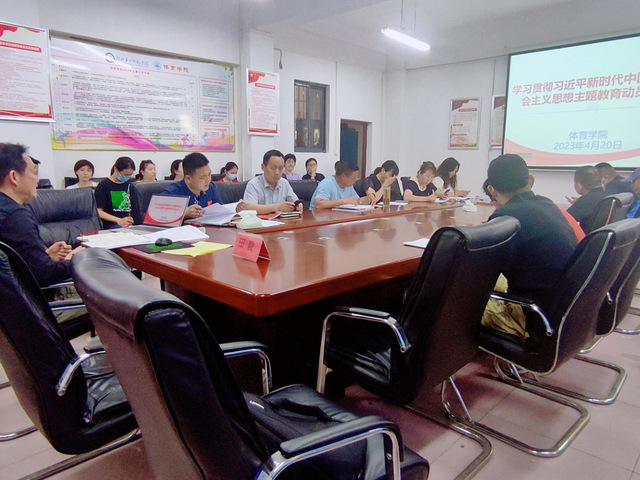 本网讯(通讯员 向琴英) 4月20日下午,体育学院在会议室召开全体教职工大会,开展学习贯彻习近平新时代中国特色社会主义思想主题教育动员大会。全体教职工参会,总支书记张绍明主持大会。