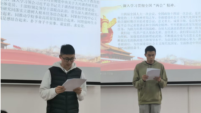 袁宇飞领学《习近平:在第十四届全国人民代表大会第一次会议上的讲话》、《习近平:扎实抓好主题教育 为奋进新征程凝心聚力》,谭淳领学《习近平:关于在全党大兴调查研究的工作方案》。何思琪组织全体党员学习了《习近平:牢牢把握高质量发展这个首要任务》《国家安全法》、《省纪委监委通报 6 起违规吃喝风腐一体典型案例、酒驾醉驾警示案例》等内容。