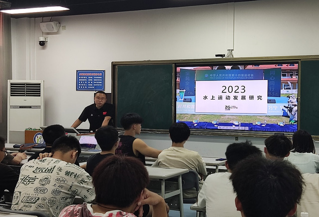 课堂上,王攀龙总经理作为网球国家级裁判、网球二级运动员、国家中级游泳教练员、国家中级营养师、武汉中冠体育有限公司经理、国家体育总局水上运动管理中心认证水上行业专家,通过丰富的实践经验和案例,就水上运动项目、水上运动发展、水上运动竞赛、水上运动需求四个方面为师生进行了讲解,并逐一解答学生关于专业发展的疑惑。