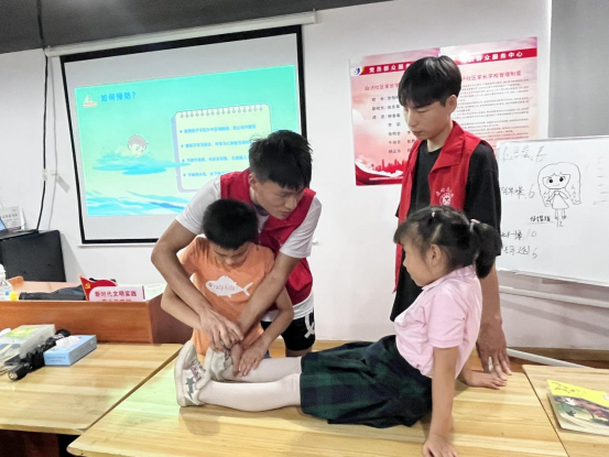 为深入贯彻落实青少年暑期安全防范工作,持续提升青少年防溺水安全知识,提升青少年暑期自我安全防护意识,7月16日下午,白浒社区联合湖北二师体育学院健康湖北行赴白浒社区社会实践队实践队员们开展“平安暑假 健康生活“亲子安全教育课堂活动,为辖区20余名亲子家庭带来一堂沉浸式体验课堂。