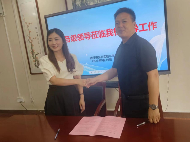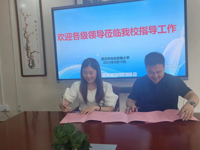本网讯 (通讯员 向琴英) 9月19日,我院与武汉光谷实验小学共建大学生实习基地协议签署仪式在光谷实验小学会议室举办。副院长尹开宁、指导老师周越,光谷实验小学校长李静、体育组组长及相关指导老师出席了签约仪式,并就双方实习基地建设进行了交流座谈。