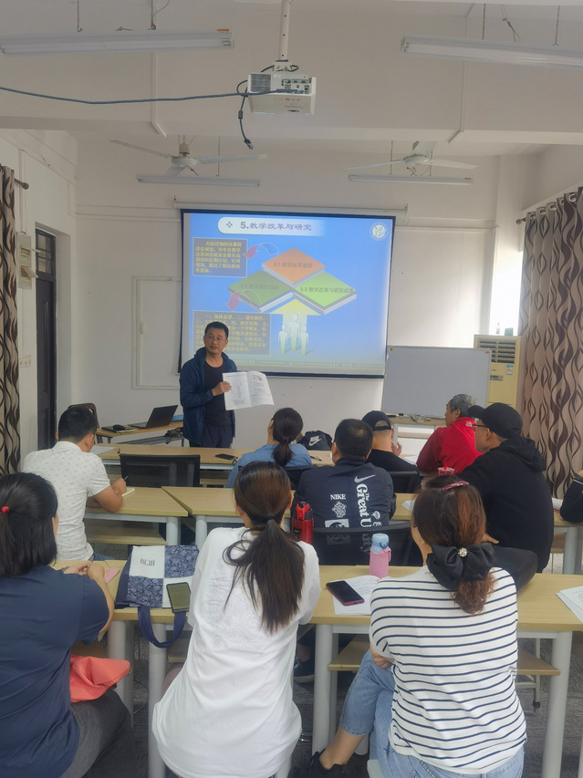 本次主题党日“党建+”的特色活动,支部请来了体育学院省级一流课程建设的专家黄志强老师就国家级、省级一流课程的建设、申报进行了经验分享,黄老师从课程建设的前期准备、申报书撰写、支撑材料积累、课程团队的搭建等方面与支部教师同志们进行了交流,交流中蒋老师、王老师分别提出了技术课理论成绩较低、课程团队的搭建等问题,黄老师一一进行了回复和交流。黄老师严谨的治学和一丝不苟的精神深深的感动了大家,活动中支部老师们为黄老师响起了四次掌声。