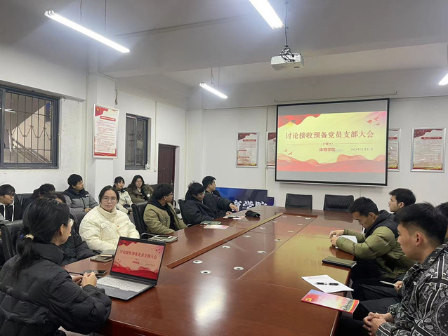 12月21日晚,我院于在学院会议室召开了讨论接收预备党员支部大会,学生支部全体党员参会,会议由体育学院学生党支部书记何思琪主持。