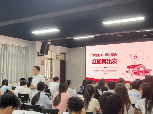 本期培训班开班仪式圆满结束。我院党总支副书记镇方松以《不忘初心,勇立潮头红船再出发》为题为我院入党积极分子做“缅怀历史,学习红船精神”专题授课。