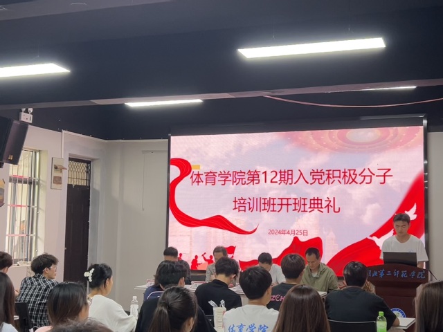 (本网讯/通讯员 廉甜甜吴晓晓)4月25日下午,我院第12期入党积极分子培训班开班典礼于体育学院一楼多功能会议室顺利举行。出席本次活动的有我院党总支书记张绍明、党总支副书记镇方松、副院长、教师第一党支部书记尹开宁、教师第二党支部书记蒋志伟。会议由学生党支部书记何思琪主持。