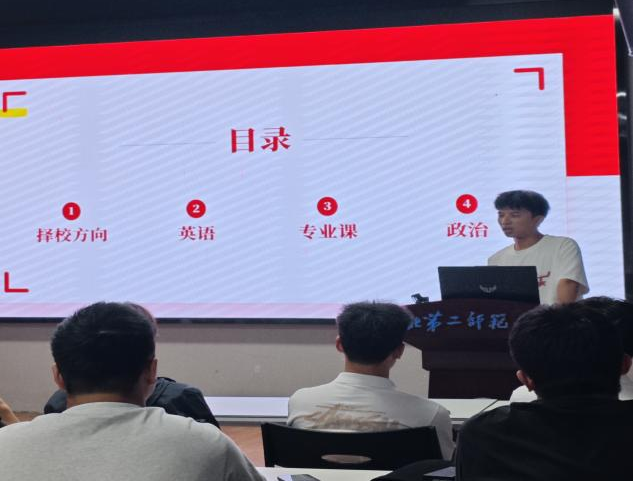 本次考研动员与分享活动休闲体育系准备充分,由蒋志伟副教授主持、雷学会主任总结、刘煜主任给出重要建议,分别邀请了20体教1班的史彬、张义万、20休体1班的彭博、22体教3班的朱叶等4位考研上岸的同学组成分享团队,分享了考取华中师范大学、华南师范大学和武汉体育学院等学校的成功经验。史彬、张义万学长从2025年考研政策、招生趋势、英语政治专业课备考技巧等方面做了主旨分享,并对同学们关于报考院校、类型、复习方法、答题技巧等方面进行了深入剖析和答疑解惑,取得了同学们的一致好评。