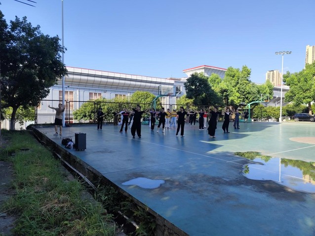 国家级裁判,国家级健身指导员,湖北第二师范学院青年教师杜啸及武汉体育学院教师陈晨分别对学员进行健身操一级和二级规定动作技能培训,学员顶着烈日,认真练习,收获满满。