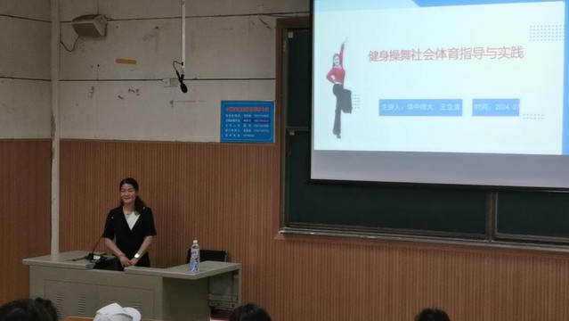 华中师范大学体育学院副教授,硕士生导师,美国俄亥俄州立大学访问学者王立清副教授对健身操舞的分类、节目编排的社会指导进行了讲解。
