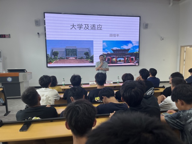 课上,田恒平介绍了学校的悠久历史与辉煌成就,从学校的创立之初到如今的蓬勃发展,每一个重要节点都凝聚着历代师生的辛勤汗水与不懈努力。他指出,作为新时代的大学生,首先要做有理想、有勇气、有追求梦想的“大学生”,勇于担当时代赋予的使命,为实现中华民族伟大复兴的中国梦贡献青春力量。其次,要努力成为自强不息、坚定为党为国为民理念的“大学问”者,通过不断学习与实践,树立正确的世界观、人生观和价值观,为社会发展贡献智慧与力量。