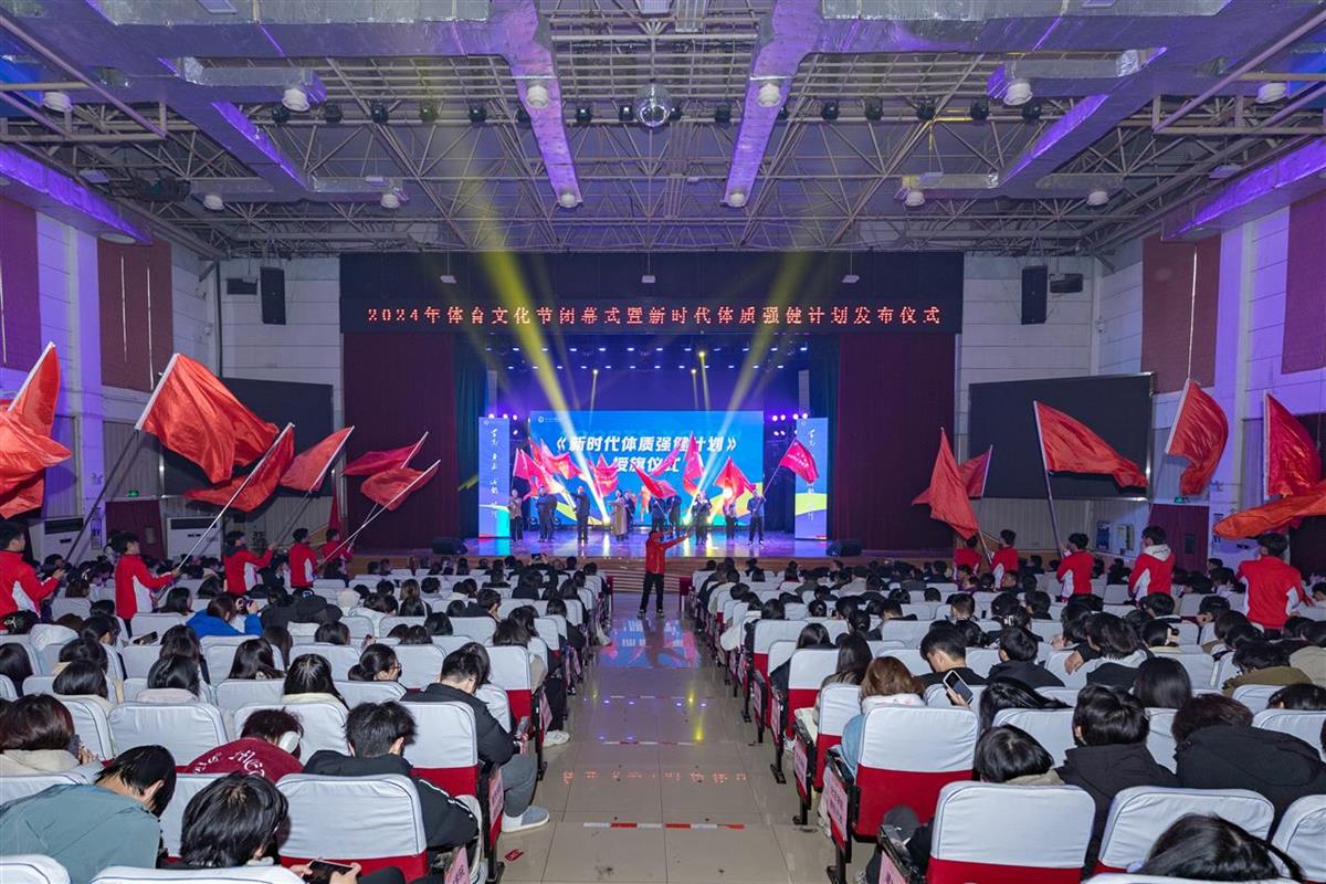 12月12日,湖北第二师范学院2024年体育文化节闭幕式暨新时代体质强健计划发布仪式在大礼堂举行。